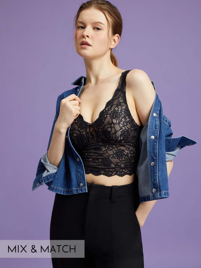 Lace Wireless Longline Padded Cami Bralette (Cup B-D)